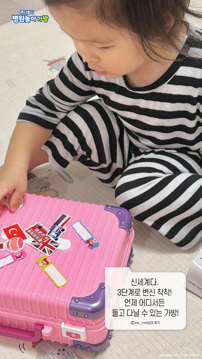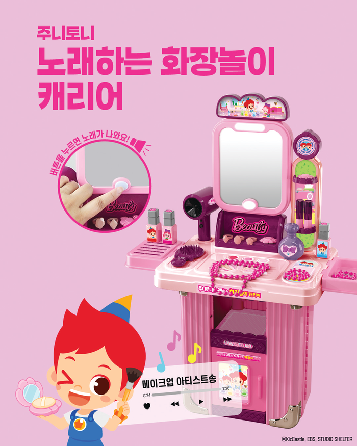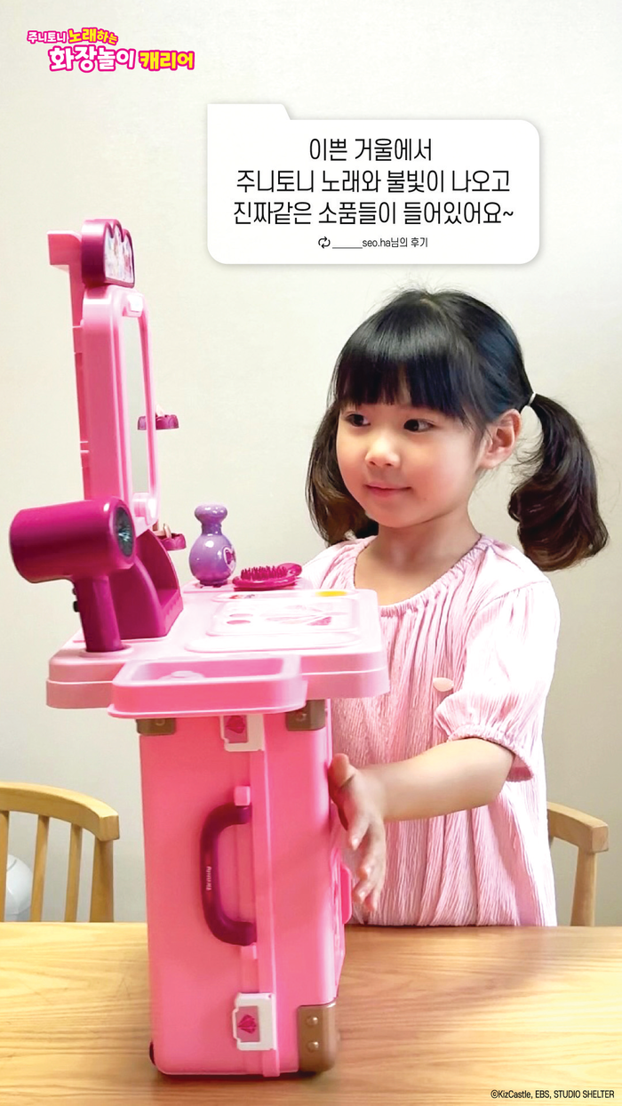 키즈캐슬은 지난해 9월 역할놀이 완구 주니토니 마법 변신가방 3종을 가장 먼저 출시했다. 주니토니 노래하는 주방놀이 캐리어·화장 놀이 캐리어·병원 놀이 가방으로 구성된 이 제품은 휴대하기 좋고 놀고 나서 정리하기도 편리하다. 화장 놀이와 주방 놀이 제품에는 주니토니 인기 동요 사운드 기능을 적용해 즐거움을 더했다.