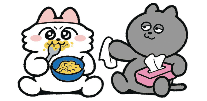일상에 숨어 있는 작고 재미있는 순간을 포착해 보여주는 응메네코는 대사 없이 다양한 상황과 감정을 표현한다. 특히 어딘가 허술하고 빈틈이 보이는 표정, 불완전한 행동에도 매일 느긋하게 살아가는 친근한 모습은 과하게 설명하지 않는 여백과 어우러지며 공감을 이끈다.