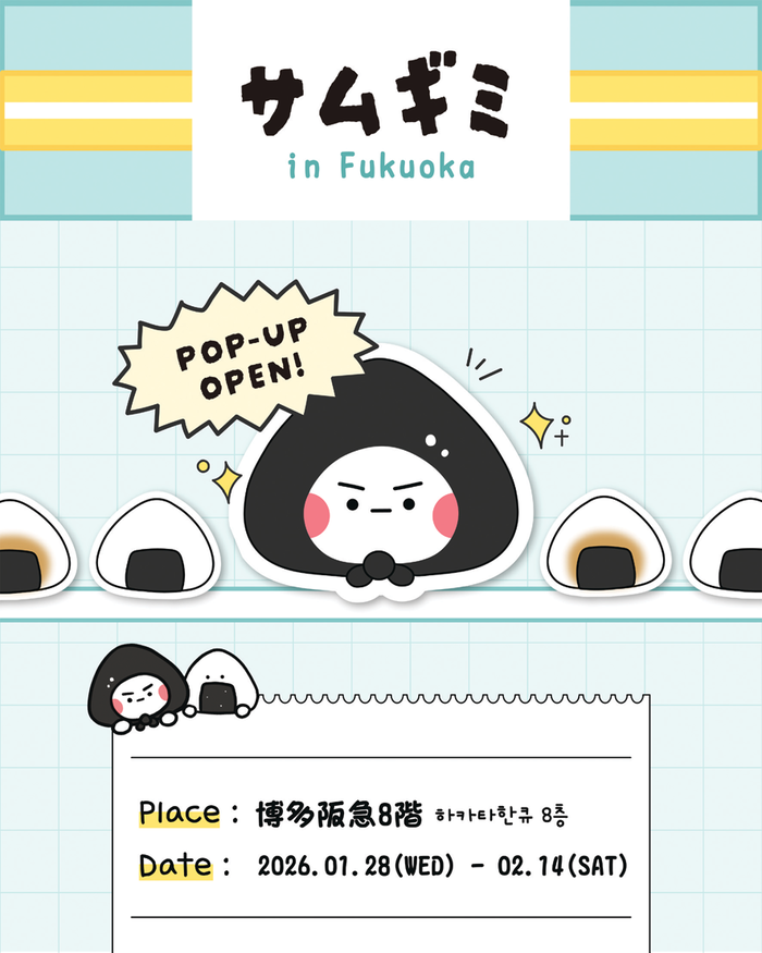 삼김이가 일본 후쿠오카현 하카타에 있는 한큐백화점에서 열린 팝업을 통해 현지 팬들과 만났다. 오니기리를 연상시키는 모습은 일본의 식문화와 자연스럽게 연결돼 이질감 없이 친근하게 받아들여졌다. 이렇게 일본 시장에서 쌓은 긍정적인 접점은 앞으로 굿즈 출시와 협업 등 다양한 활동으로 이어질 가능성을 보여준다.