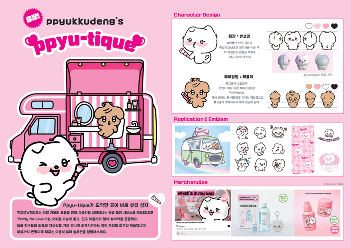 쀼끄댕을 K-뷰티와 결합한 독자적인 뷰티 캐릭터 브랜드로 발전시키는 것이 목표다. 쀼띠끄에서 펼쳐지는 다양한 뷰티 경험을 통해 각 동물의 매력을 발견해 가는 여정을 세계관에 담아 공감과 재미를 자연스럽게 전달하는 캐릭터로 만들어가고자 한다. 아직 시작 단계지만 이런 방향에 맞춰 콜라보레이션, 이모티콘, 굿즈 등 다양한 콘텐츠로 확장하면서 쀼끄댕만의 차별화된 뷰티 브랜드 경험을 구축해 나갈 계획이다.
