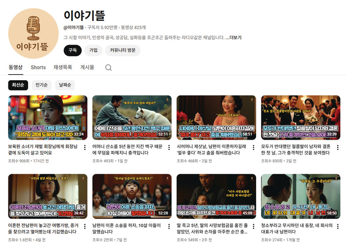 2025년 12월 15일 기준(영화/애니메이션 분야 구독자 급상승 순위)