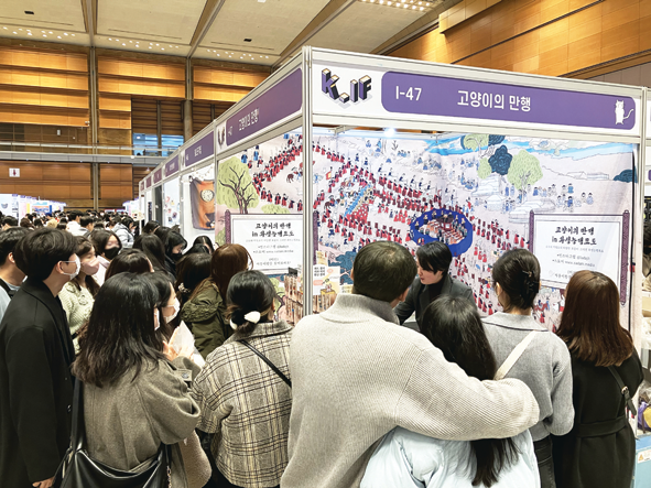 십장생묘도 데스크패드가 올해 K-Heritage 공모에 선정돼 국가유산진흥원 온·오프라인 매장(국립고궁박물관, 인천국제공항 문화상품점 등)에서 유통 중이다. 앞으로 다양한 문화 상품을 개발하고 해외 도서전에도 나가 우리 문화 알림이가 되겠다. 많은 분이 기다리는 ‘야옹이왕을 찾아라’ 2권은 내년 초에 선보일 예정이다. 계속 이어질 조선냥국의 이야기를 기대해 주기 바란다.