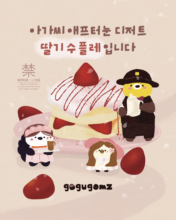 ‘남들과 다른 모습이라도 괜찮아’란 메시지를 따뜻하고 포근하게 담고자 했다. 서로 다른 다섯 캐릭터로 다양한 개성과 성격, 고민, 남들도 나와 다르지 않음을 자연스럽게 표현하고 싶었다. 디저트에 담긴 고구곰즈의 따스함을 느끼면서 잠시나마 일상에서 잊기 쉬운 작고 소중한 행복의 시간을 가져보길 바란다.