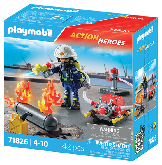 화재를 진압하는 소방관 역할 놀이를 즐길 수 있는 제품.