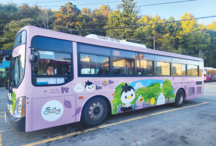 이와 함께 시는 웃장, 터미널, 아랫장, 순천역, 광양 터미널 등을 순환하는 77번 버스 2대에 루미·뚱이×몰랑 캐릭터 디자인을 입혀 내년 1월까지 한시적으로 운행한다.