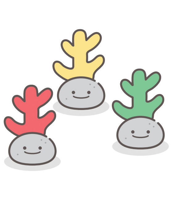 산호초 형제들. 빨간색은 불같은 성격, 노란색은 소심한 성격, 초록색은 성실한 성격이지만 모두 모이면 난장판이 된다.