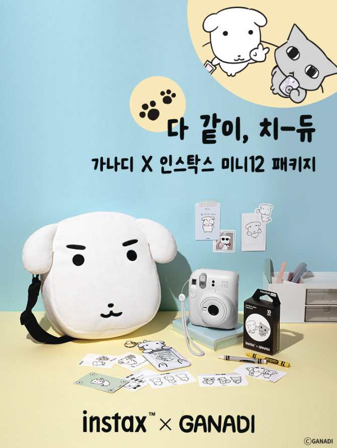 한국후지필름이 가나디 인스탁스 미니 패키지를 카카오톡 선물하기에 단독 출시했다. 제품은 가나디 얼굴 쿠션 가방과 인스탁스 미니 패키지, 스페셜 포토 카드로 구성됐다.