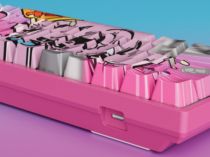 카와이소니 작가의 특별 일러스트를 전면에 입힌 키보드는 가로 31.6cm, 세로 10.7cm, 높이 3.9cm 크기로, US 배열이며 최대 0.01mm까지 설정할 수 있는 래피드 트리거 기능을 탑재했다.