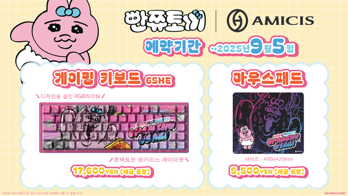 일본의 게임용품 전문 브랜드 AMICIS가 금방이라도 울것 같지만 늘 씩씩하게 살아가는 캐릭터 빤쮸토끼와 협업해 게이밍에 최적화된 한정판 키보드와 마우스 패드를 선보였다.