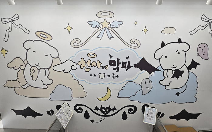 이번 팝업은 내 안의 천사와 악마라는 일상 속 갈등을 가나디의 세계관으로 표현한 것이 특징. 정직하고 선한 천사 가나디는 일, 운동, 청소처럼 필요한 일을 권하지만, 달콤한 유혹으로 은밀히 속삭이는 악마 가나디는 야식, 배달, 미루기 같은 선택을 부추긴다.