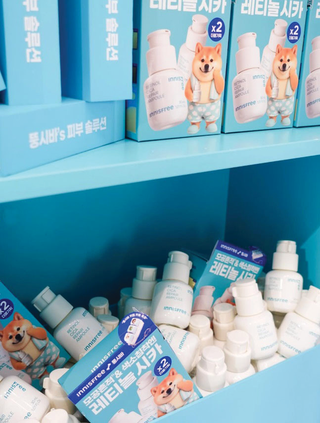 또 팝업 인증샷 이벤트를 통해 레티놀 PDRN 앰플 겔 마스크를 나눠주고 베스트 리뷰 당첨자 10명에게는 특별 제작한 이니스프리×뚱시바 스페셜 키트를 제공하는 등 다양한 프로모션을 펼쳤다.