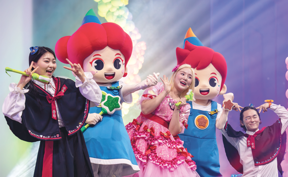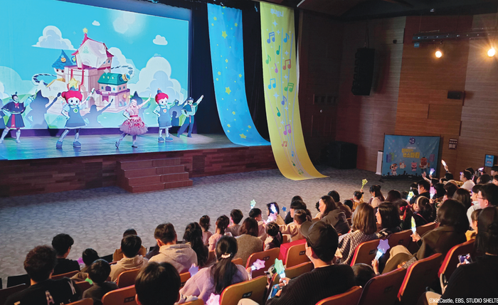 이토록 신나는 무대 인사가 또 있을까. 주니와 토니, 츄츄와 함께하는 싱 앤 댄스(Sing & Dance) 공연은 영화 시작 전부터 객석을 열광의 도가니로 몰아넣는다. 이들의 등장이 예고된 상영 회차는 언제나 매진이다. 관객을 향한 차분한 감사 인사 대신 어깨가 들썩이는 공연을 준비한 건 정유진 키즈캐슬 원천콘텐츠개발본부장의 아이디어였다. 유튜브 채널 주니토니가 5년간 받은 무수한 버튼은 그녀가 쏟아부은 열정의 결과다.