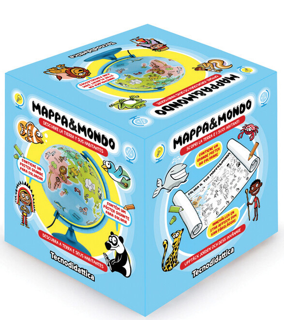 어린이를 위한 25cm 크기의 지구본으로 각 대륙이나 나라를 대표하는 동물들이 그려져 있다.
