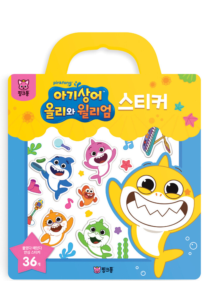 애니메이션 아기상어 올리와 윌리엄의 캐릭터들을 만날 수 있는 가방 스티커북.