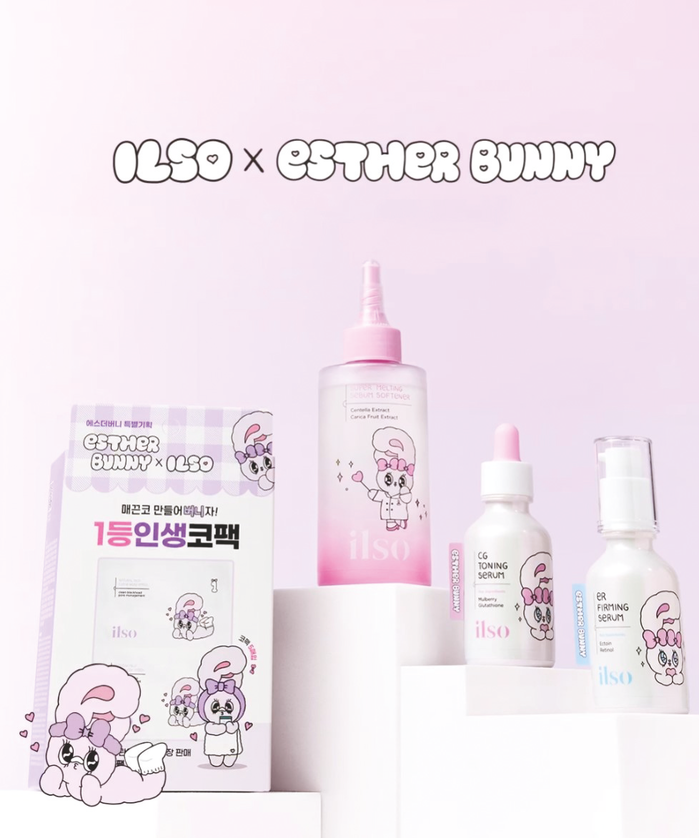 에스더버니가 미립의 더마 뷰티 브랜드 일소(ilso)와 콜라보레이션 제품을 선보였다.