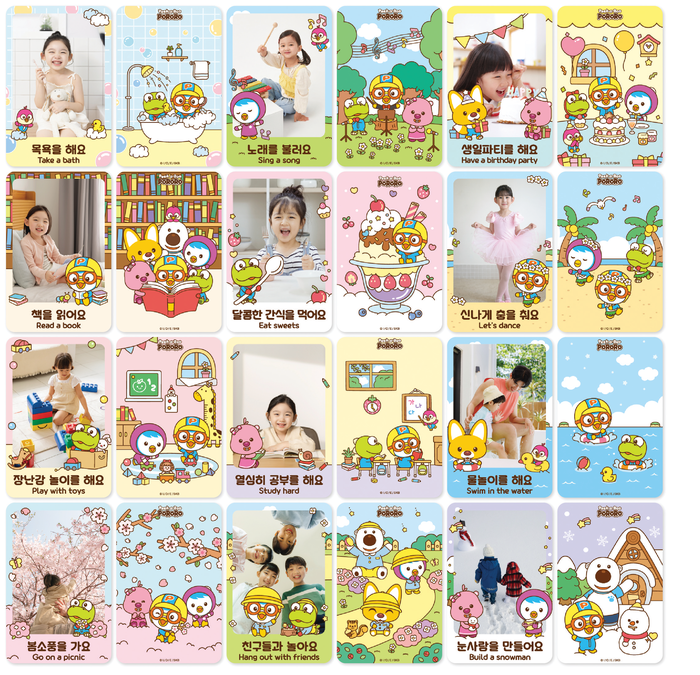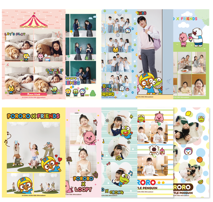 포토카드는 귀여운 뽀로로와 친구들 아트워크 템플릿에 간단히 사진만 넣어 만드는 커스텀 포토카드와, 스티커와 텍스트 탭을 활용해 자유롭게 꾸밀 수 있는 커스텀 문장카드로 구성됐다. 또 커버와 내지 디자인을 직접 선택해 나만의 포토북 제작도 가능하다.