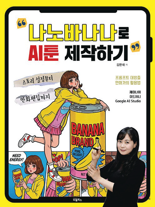 김한재 강동대 만화애니메이션콘텐츠과 교수가 지은 ‘나노바나나로 AI툰 제작하기’는 단순한 이미지 생성 기법을 소개하는 기술서에 그치지 않는다. 머릿속에만 있던 이야기를 실제 만화 작품으로 완성할 수 있도록 기획부터 제작, 후반 작업, 출판 확장까지의 흐름을 안내하는 실전 가이드북이다.