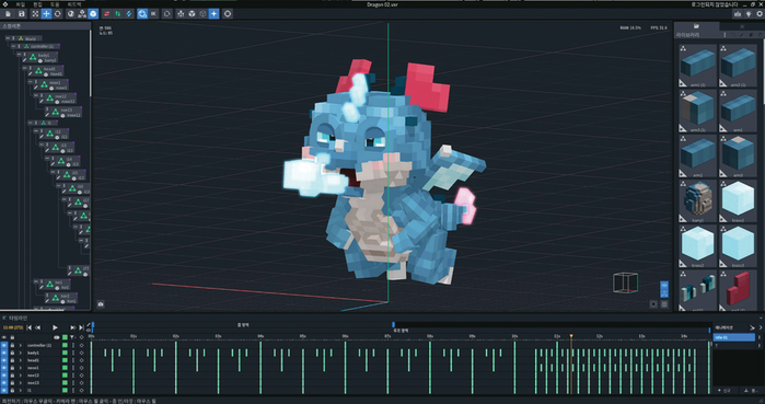 복셀로 구현 가능한지, 그렇다면 디자인이 만족스럽게 나올지를 중요하게 여긴다. 더샌드박스가 만든 자체 프로그램 툴인 ‘복스에딧’은 복셀 면을 돌린다거나 로우폴리 형태처럼 단면을 이어서 만드는 것이 가능하다. 3D의 정교함과 복셀의 단순함을 융합해 새로운 스타일의 형태를 띤다는 점이 매력적이다.