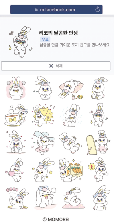 리코와 핑코로 이뤄진 캐릭터 브랜드 모모레이의 작가다. 요즘 들어 새 아트워크와 이모티콘을 개발하고 있는데 인스타툰도 그리기 시작했다. 조금씩 새로운 모습을 보여 드리려고 늘 고민하고 있다.