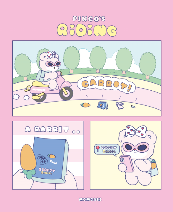 해외여행 중 얻은 영감을 바탕으로 복고풍의 발랄한 캐릭터를 창작하고 싶었다. 토끼가 적합할 것 같아 리코를 개발했는데 행복한 일상을 함께할 친구가 필요해 핑코도 만들었다. 리코는 발랄하며 천진난만하고 패션과 리본을 좋아하는 러블리한 흰토끼다. 복슬복슬한 털의 핑크색 곰 핑코는 리코의 베스트프렌드다. 다정다감하고 친절하며 섬세한 소녀 감성을 지녔다. 둘은 우연한 계기로 도움을 주고 받으며 친한 친구가 됐다. 패션 코드와 라이프스타일이 잘 맞아 좋아하는 것들을 공유하며 서로의 필요를 채워주는 각별한 사이다. 모모레이는1980∼90년대 레트로 코믹스 스타일에 좀 더 현대적이고 키치한 무드를 캐릭터에 녹여낸 스타일이라 할 수 있다. 모모레이는 원래 작가명으로 썼는데 자연스레 캐릭터 브랜드가 됐다.