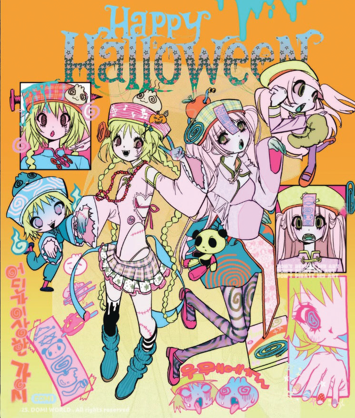 도미월드의 여성들은 활기가 넘친다. 선명하고 화려해 더욱 생생하고 강렬하게 다가온다. 옛날 순정만화에서 튀어나온 듯한 분위기를 풍기면서도 촌스러움은 찾아볼 수 없는 감각적인 일러스트는 하이틴 패션잡지의 한 페이지를 보는 듯하다. 이들에게 열광하는 건 그 시절의 감성 때문일까. 아니면 러블리 하이틴이 뿜어내는 생기발랄함 때문일까.