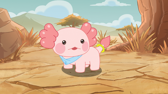 DNA 도감에 등록되어 있지 않고, 등록도 할 수 없는 미지의 생물. 언제 어디로 튈지 모르는 장난꾸러기다. 엄청난 먹보라서 눈에 보이는 건 뭐든 먹어버릴 수 있어 늘 주의 깊게 지켜봐야 한다.