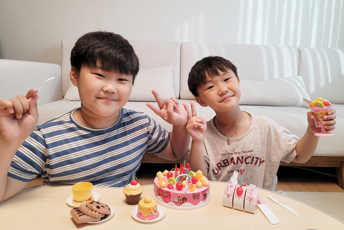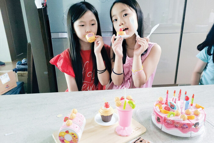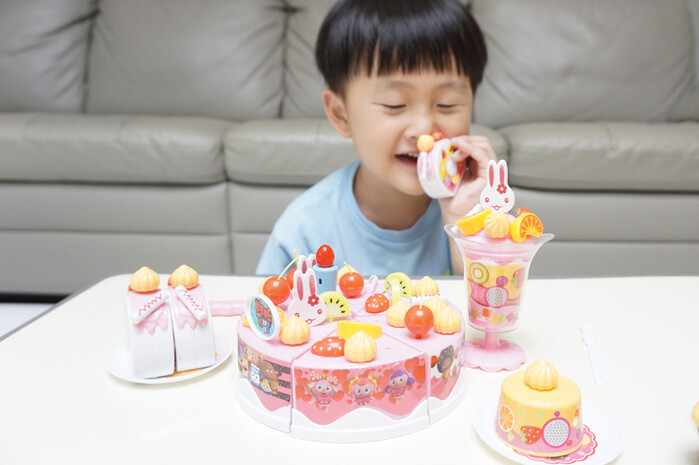 아이가 원하는 대로 케이크를 꾸밀 수 있어 재미있어해요. 또 많은 디저트 모형 덕분에 홈파티 놀이를 더욱 실감 나게 즐길 수 있어요.