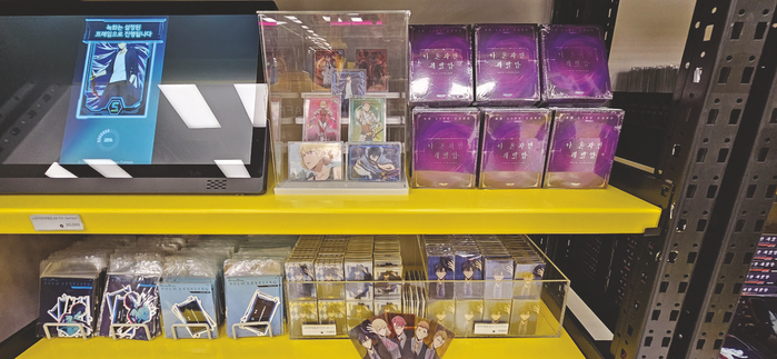 플레이어가 된 자신의 모습을 사진으로 남길 수 있는 포토존을 지나면 작품 속 캐릭터와 세계관을 소유해 간직할 수 있는 아이템으로 가득한 굿즈 존이 펼쳐졌다.