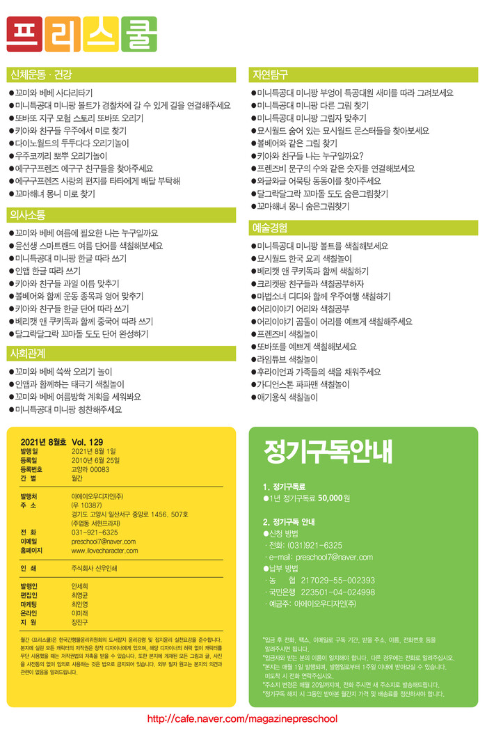 월간 < 프리스쿨 > 2021년 8월호 출판 소식입니다.