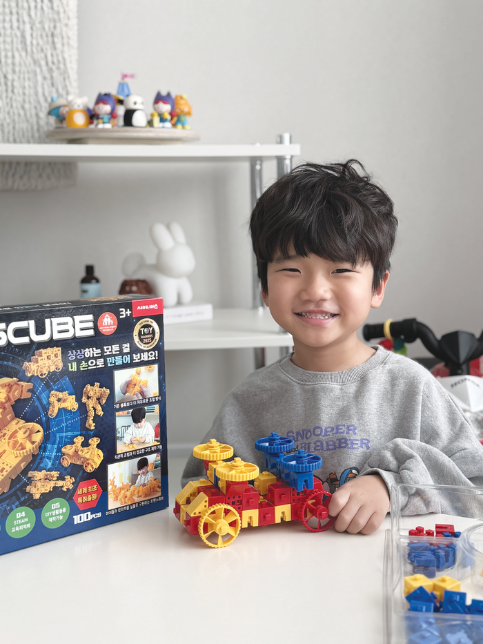 트랜스큐브는 블록을 요리조리 끼워 맞추며 더 튼튼하고 정교하게 모양을 만드는 매력이 있어요. 아이가 시간 가는 줄 모르고 집중하는 모습을 보니 뿌듯해요.