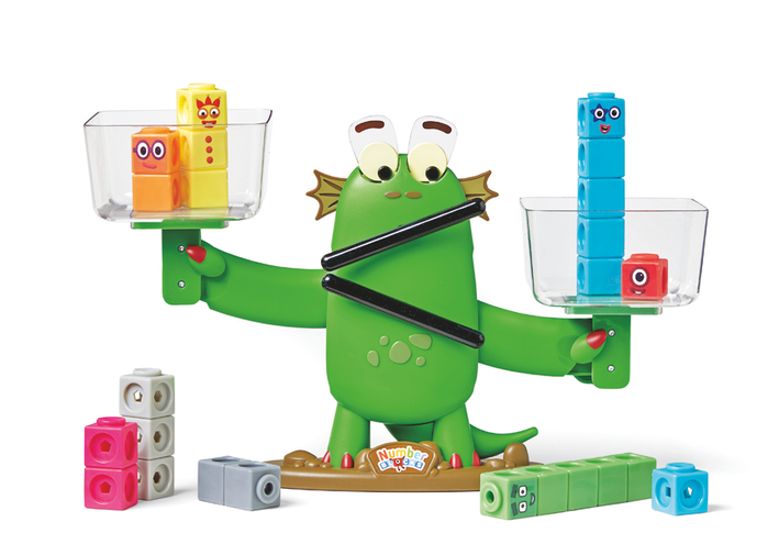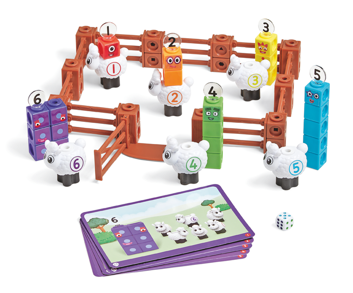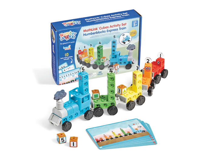 넘버블록스 블록지 양팔 저울은 블록지 캐릭터와 함께 큰 수와 작은 수를 비교하는 수학 놀이를, 넘버블록스 기차놀이와 넘버블록스 양떼 목장으로는 기차, 양떼 목장을 직접 조립하며 수 세기와 기초 연산 활동을 매쓰링크 큐브로 경험할 수 있다.