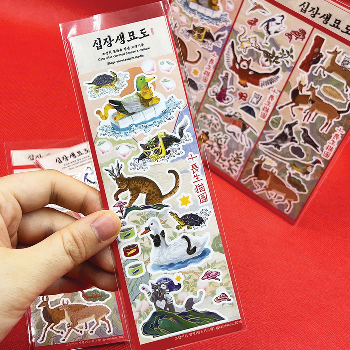 십장생묘도 데스크패드가 올해 K-Heritage 공모에 선정돼 국가유산진흥원 온·오프라인 매장(국립고궁박물관, 인천국제공항 문화상품점 등)에서 유통 중이다. 앞으로 다양한 문화 상품을 개발하고 해외 도서전에도 나가 우리 문화 알림이가 되겠다. 많은 분이 기다리는 ‘야옹이왕을 찾아라’ 2권은 내년 초에 선보일 예정이다. 계속 이어질 조선냥국의 이야기를 기대해 주기 바란다.