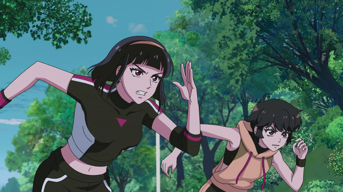 길거리 달리기는 나중에 생각해 낸 아이디어였다. 원래는 트랙 위를 달리는 내용이었는데 재밌는 화면을 만들기가 쉽지 않았다. 애니메이션답게 상상력과 박진감 넘치는 장면을 위해 길거리 달리기로 설정하면서부터 이야기가 풀리기 시작했다. 러닝 액션을 연출하는 건 그리 어렵지 않았다. 어떻게 연출해야 스토리와 감정이 달리기로 이어지게 할 수 있을지가 가장 중요했다. 나애리, 하니, 주나비의 달리기 스타일을 다르게 표현하는 것에도 신경 많이 썼다. 나애리는 단단하면서도 예쁜 인조인간, 하니는 작고 빠른 살쾡이나 고양이, 주나비는 야성적이고 위협적인 흑표범 같은 느낌이 들도록 했다. 다만 제작 여건상 3D 기법을 마음껏 활용할 수 없어서 좀 아쉬웠다. 공간의 원근감을 더하고 카메라 워킹이 훨씬 자유로워 연출도 더 다이내믹해질 수 있었는데 말이다.