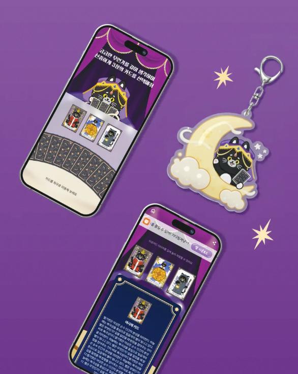 AI 타로 키링은 AX 인터랙션 기술의 집약체로, NFC 태그를 스마트폰에 가까이 대기만 하면 별도의 앱 설치나 구독료 없이 곧바로 콘텐츠를 즐길 수 있다는 점이 차별화 포인트다.