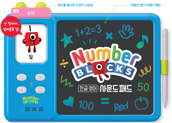 유아용 수저와 도시락 가방을 포함한 넘버블록스 식기류 20종을 출시했고 실내 인테리어 소품으로 활용할 수 있는 넘버블록스 벽시계, 목욕 시간을 학습 놀이로 연결해 주는 목욕놀이 스티커와 재미있는 사운드패드도 새로 선보였다.