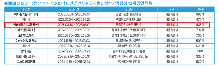 실제 공연 예술 통합 전산망 집계 결과에 따르면 넘버블록스 뮤지컬은 올 상반기 공연 시설 뮤지컬 티켓 판매액 부문에서 1,000석 미만 공연 중 전체 3위를 차지했다. 성인 공연까지 포함해 전 공연을 대상으로 한 순위로, 어린이 뮤지컬 중 유일하게 톱 10에 진입하며 두각을 나타냈다.