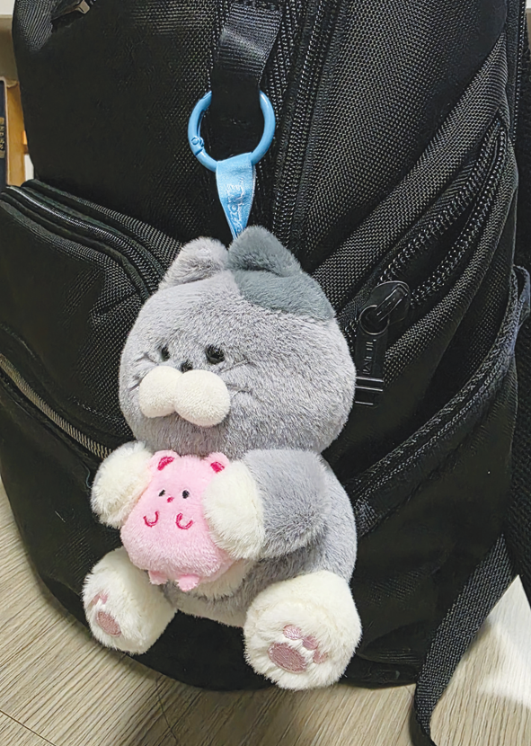 고리가 O링 형태여서 가방에 걸기 쉬워요. 튼튼해서 잃어버릴 걱정이 없겠어요. 어떤 고양이가 나올지 기대하며 열어보는 재미도 있어요.