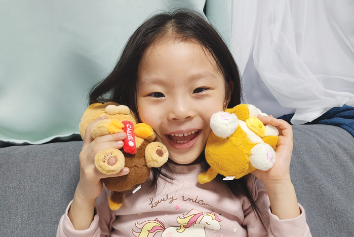 아이가 연신 귀엽다면서 품에 안고 쓰다듬어요. 유치원 가방에 달고 다니면서 친구들에게 자랑하겠다고 성화예요.
