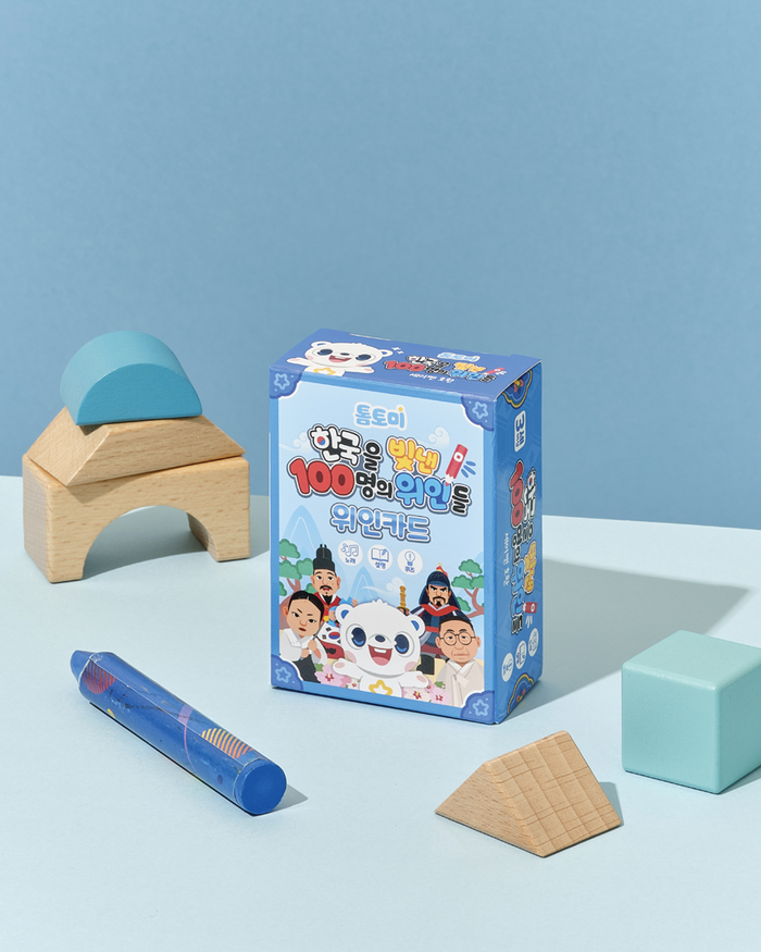 누적 조회 수 2,020만 회를 넘기며 국민 동요로 사랑받고 있는 ‘한국을 빛낸 100명의 위인들’을 기반으로 한 사운드 북과 위인 카드로, 고조선부터 대한민국에 이르기까지 5,000년의 한반도 역사를 아이들 눈높이에 맞춰 노래와 그림을 통해 배울 수 있게 구성했다.