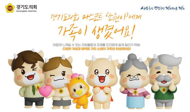 경기도의회는 의회 마스코트 소원이의 가족 캐릭터 5종을 새로 제작했다. 소원이는 2016년 도민을 위해 소처럼 열심히 일하고 도민의 소원을 듣고 해결해 주는 의원이라는 의미를 담아 황소를 모티브로 만들었다. 추가로 제작한 가족 캐릭터는 할아버지, 할머니, 아버지, 어머니, 아기 등으로 SNS, 유튜브, 인쇄 홍보물, 굿즈 등 다양한 콘텐츠에 활용할 예정이다.