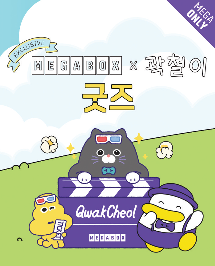메가박스가 재치 있는 매력으로 꽉 찬 인기 이모티콘 캐릭터 곽철이와 유쾌한 콜라보레이션을 준비했다. 새 학기를 맞은 곽철이의 아르바이트 체험기를 콘셉트로 해 신입 크루로 입사한 곽철이가 메가박스 캐릭터 냥만춘과 함께한 한정판 굿즈와 인스타툰을 선보였다.