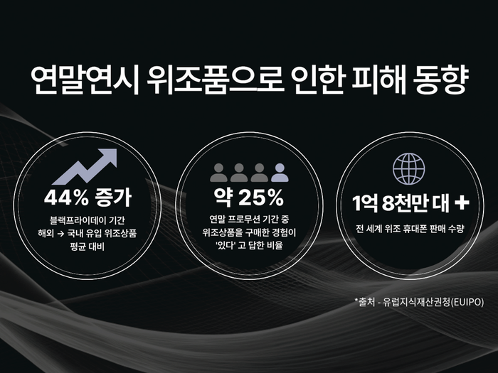 최근 조사에 따르면 블랙프라이데이 기간에 해외에서 국내로 유입되는 위조 상품이 약 44% 늘고, 해외직구 피해 신고도 12월과 1월에 집중되는 경향을 보이는 것으로 나타났다. 또한 글로벌 소비자 조사에서는 쇼핑객 4명 중 1명(약 25%)이 연말 프로모션 기간 중 위조 상품을 구매한 경험이 있다고 답하는 등 소비자 피해가 지속적으로 보고 되고 있다.