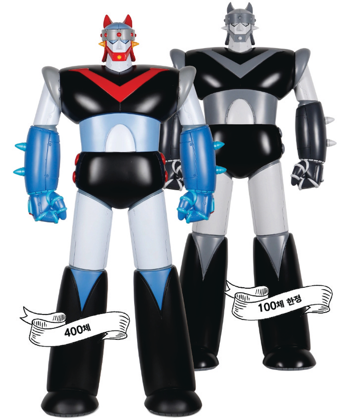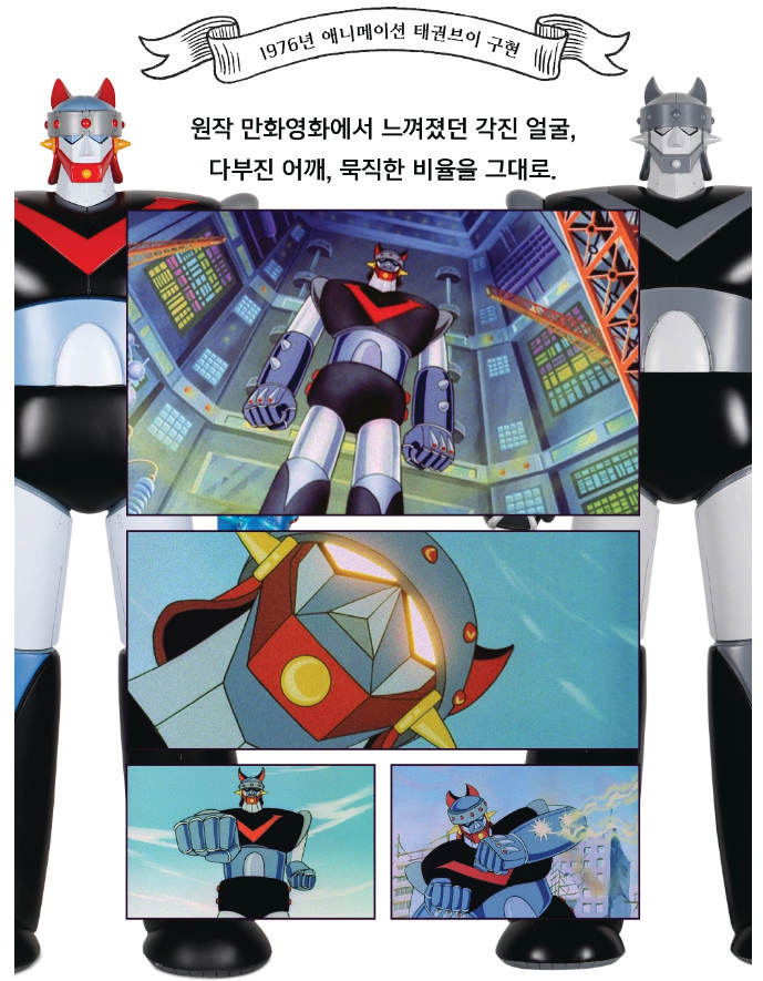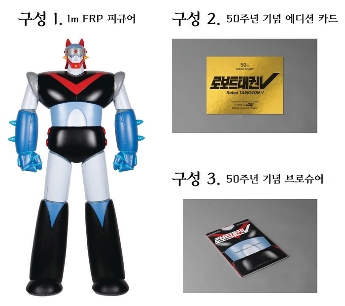 500개 한정판으로 나온 태권브이 피규어는 1976년에 나온 애니메이션 원작의 색감을 생생하게 재현한 컬러 버전(400개)과 흑백 TV 속의 모습을 간직한 모노 버전(100개) 2종으로 구성됐다.