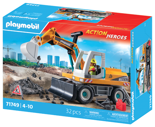 몸체가 360도 회전하는 대형 굴착기를 재현한 제품.