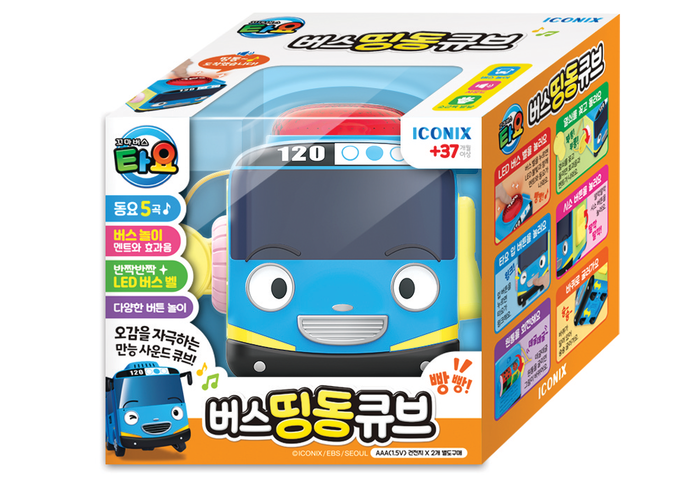 타요 버스 띵동큐브는 LED 버스 벨, 버튼, 열쇠, 회전 장치 등 다양한 조작 요소로 누르고 돌리며 반응을 체험해 보는 완구로 휴대용 스트랩이 들어 있어 밖에 들고 나가기 좋다.