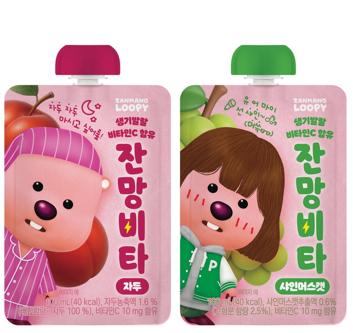 아이코닉스가 귀여운 잔망루피로 기분까지 좋아지는 잔망비타 2종을 새롭게 출시했다. 학교 급식에서 만나볼 수 있는 이 음료는 잔망루피의 정체성을 살린 패키지와 문구로 캐릭터의 귀여운 매력을 담았으며 달콤하고 상큼한 자두와 샤인머스캣 맛의 리얼 과즙을 더해 기분 좋은 과일 맛을 선사한다.