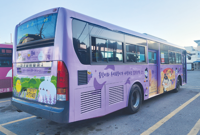 이와 함께 시는 웃장, 터미널, 아랫장, 순천역, 광양 터미널 등을 순환하는 77번 버스 2대에 루미·뚱이×몰랑 캐릭터 디자인을 입혀 내년 1월까지 한시적으로 운행한다.