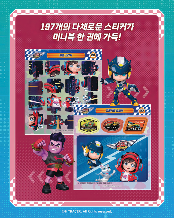 출판 분야에서도 활발한 행보가 이어지고 있다. 지난 연말 대원키즈가 선보인 필름북에 이어 1월 12일에는 히트레이서 스티커 미니북이 새로 나왔다. 아이들이 좋아하는 캐릭터와 레이싱 머신을 직접 꾸미며 놀 수 있도록 구성한 스티커 미니북은 방영 이후 높아진 팬들의 소장 욕구를 충족시키며 좋은 반응을 얻고 있다.