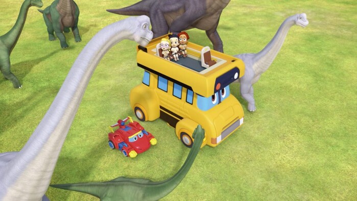공룡을 좋아하는 세 친구과 이동식 다이노 대원 등장