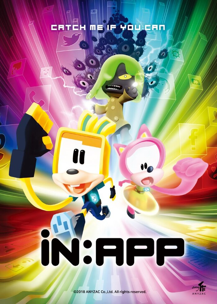 인앱은 세계적으로 보편화된 스마트폰을 소재로 한 작품으로 누구나 보고 있지만 아무도 들여다볼 수 없는 스마트폰 속 세상‘인앱월드’에서 벌어지는 스토리를 다루고 있습니다. 스마트폰 속의 세계에는 2명의 사이버 캡스 피처와 캐처가 인앱월드의 평화를 지키기 위해 좌충우돌 소탕 작전을 펼칩니다. 인앱은 2018년 서울산업진흥원, KBS, SK브로드밴드가 공동으로 지원하는 애니버라이어티 사업에 선정된 작품이기도 합니다.